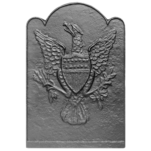 With the adoption of the Great Seal of the United States in 1782, the decorative use of the American bald eagle was applied to numerous household items. This fireback is believed to have been cast in England for the American market some time between 1780 and 1810.